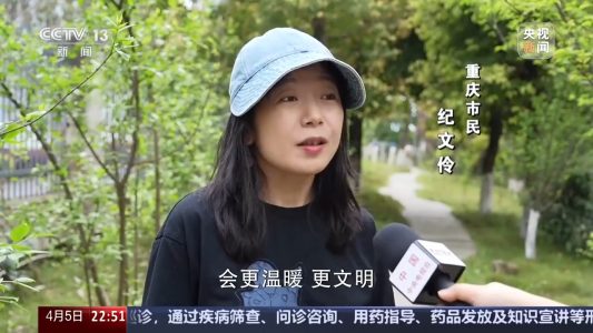 重慶市民 紀文伶:互相提醒的習慣,這樣可以讓我們相處的這種就是空間可能會更溫暖,然後更文明。