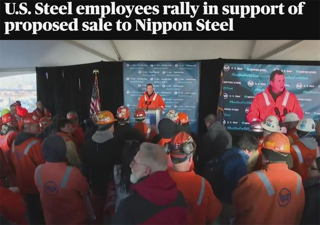 △美国哥伦比亚广播公司网站:2024年12月12日,美钢管理层和员工在位于宾夕法尼亚州的克莱顿工厂举行集会,支持这桩收购交易。