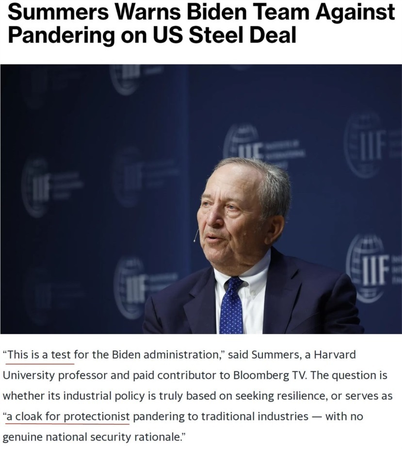 早在去年收购案推进过程中,美国前财政部长劳伦斯・萨默斯就曾表态认为,日铁收购美钢并不会构成“国家安全风险”。