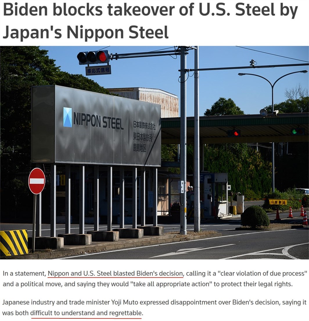 虽然日铁多次让步,但美国总统拜登当地时间3日发表声明,正式阻止了这笔价值2万亿日元(按目前汇率约合127亿美元)的交易。
