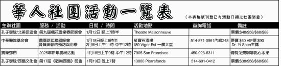 華人社團活動一覽表 发布: 2025-01-10 免责声明:本文仅代表作者个人观点,与华侨网无关联。其原创性及文中陈诉内容未经本网证实,对本文内容、文字的完整、真实性,以及时效性本网部作任何承诺,请读者自行核实相关内容。如发现稿件侵权,或作者无意愿在华侨网发布文章,请版权拥有者通知华侨网处理。