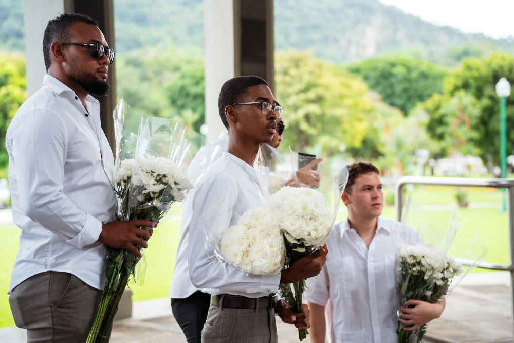 1月9日,在巴拿马首都巴拿马城,人们准备向纪念1964年“护旗运动”的“永恒之火”纪念碑献花圈。新华社记者许咏政摄