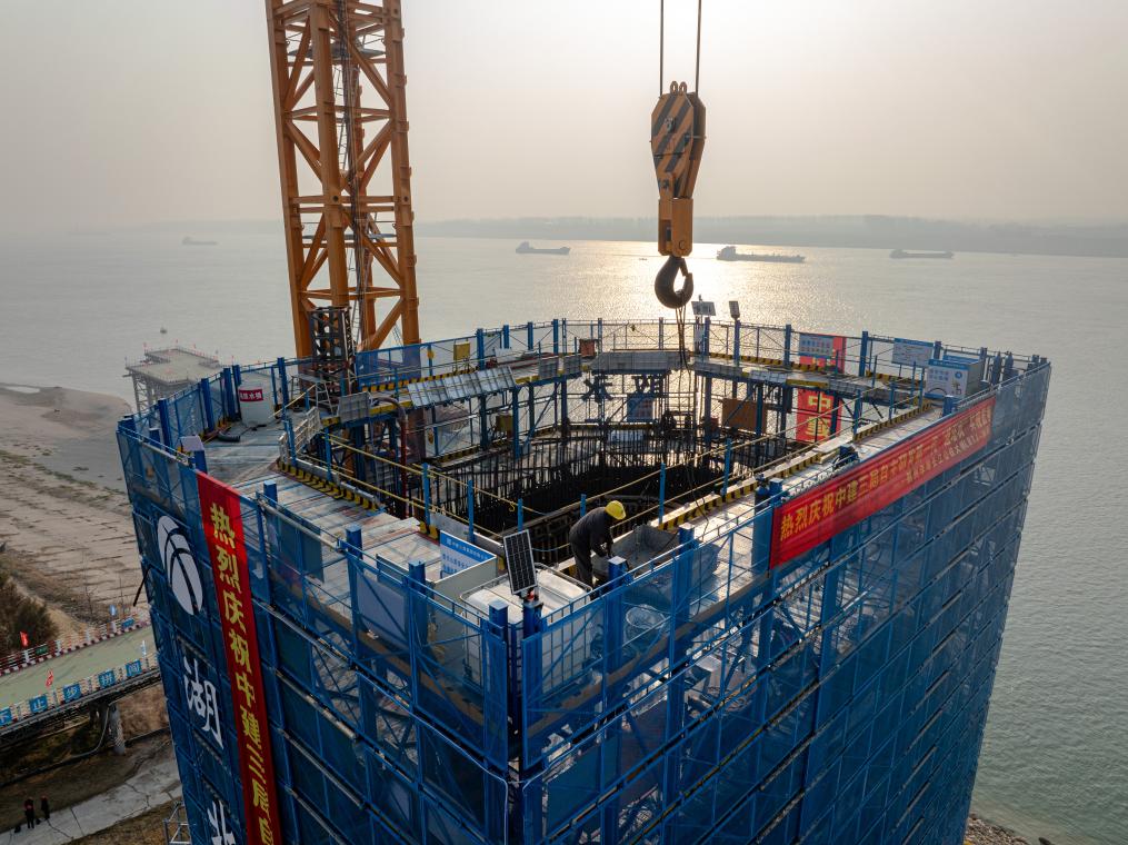 新华社武汉1月3日电(记者梁建强、熊琦)迎着朝阳,湖北荆州李埠长江公铁大桥建设现场一片忙碌景象。3日,随着项目经理何承林在数智建造控制室下达指令,新一代轻型智能“造塔机”缓缓升至30余米高空,首次顶升顺利完成。这标志着大桥北岸索塔即将进入快速“拔节生长”阶段。