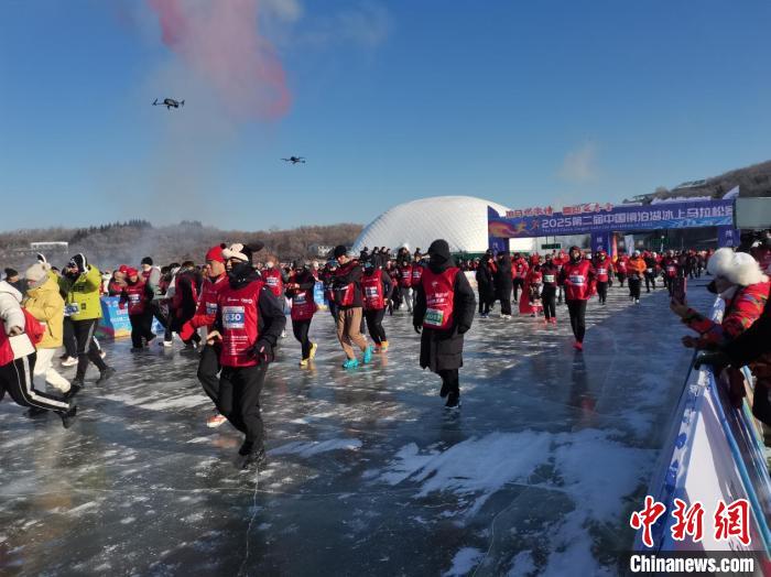 牡丹江1月12日电(唐祺 赵虎影 记者姜辉)12日,在牡丹江镜泊湖畔,以“‘冰马’燃激情、喜迎亚冬会”为主题的中国·镜泊湖第二届冰上马拉松赛成功举办。来自中俄的1000多名运动员和马拉松爱好者在镜泊湖宁静浩瀚的百里蓝冰之上激情奔跑,为现场游客和观众奉上了一场激动人心的赛事盛宴。