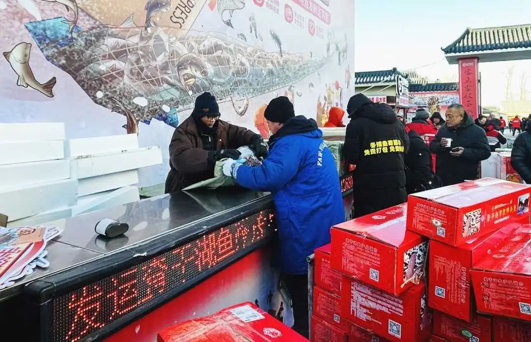2024年12月28日,查干湖渔场进出货繁忙,一条条新捕获的鲜鱼正等待着发往全国各地。
