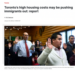 加拿大統計局認為,多倫多的高住房成本可能是導致部分移民離開的主要因素。