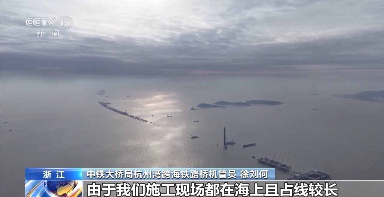 中铁大桥局杭州湾跨海铁路桥机管员 徐刘何:一毕业就能到这样世界级的项目上,我觉得很幸运,也有很多挑战。由于我们施工现场都在海上且占线较长,所有的人员、物资、设备等都需要船舶来运输,同时现场大型吊装作业也需要船舶配合完成。施工海域水深特别浅,如何做好船舶组织管理并合理运用,是我们每天都要考虑的事情。
