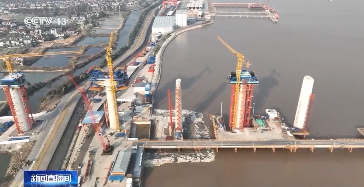 海面上,搭载北斗定位系统、国内最先进的打桩船等188台套船机设备开足马力加速,正在推进大桥从水下基础到上部结构关键阶段的施工。