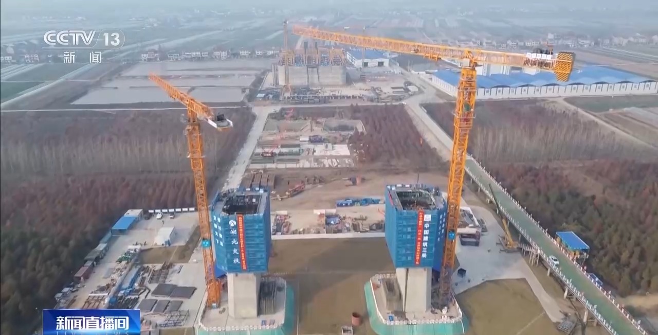 荆州李埠长江公铁大桥 千余名建设者正在进行桥梁主塔施工