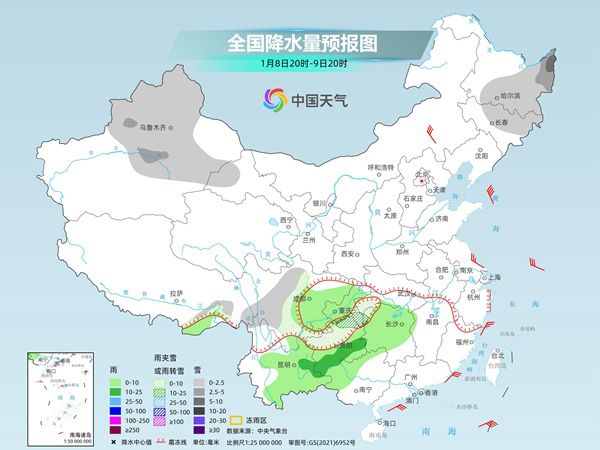 还需要关注冻雨,8日夜间至9日白天,四川南部、贵州中北部、湖南西部局地有冻雨,但好在强度不强。