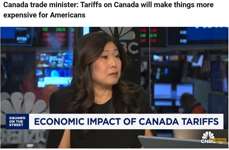 加拿大国贸部长伍凤仪指出,加征关税会增加美国企业和家庭的成本,并让美国人的生活成本变得更加昂贵。