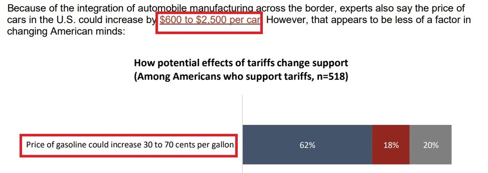 加拿大民意调查机构安格斯・里德研究所表示,对加拿大能源产品加征25%的关税,可能导致美国每加仑汽油价格上涨30到70美分,此外,每辆美国汽车的价格可能会上涨600美元到2500美元。