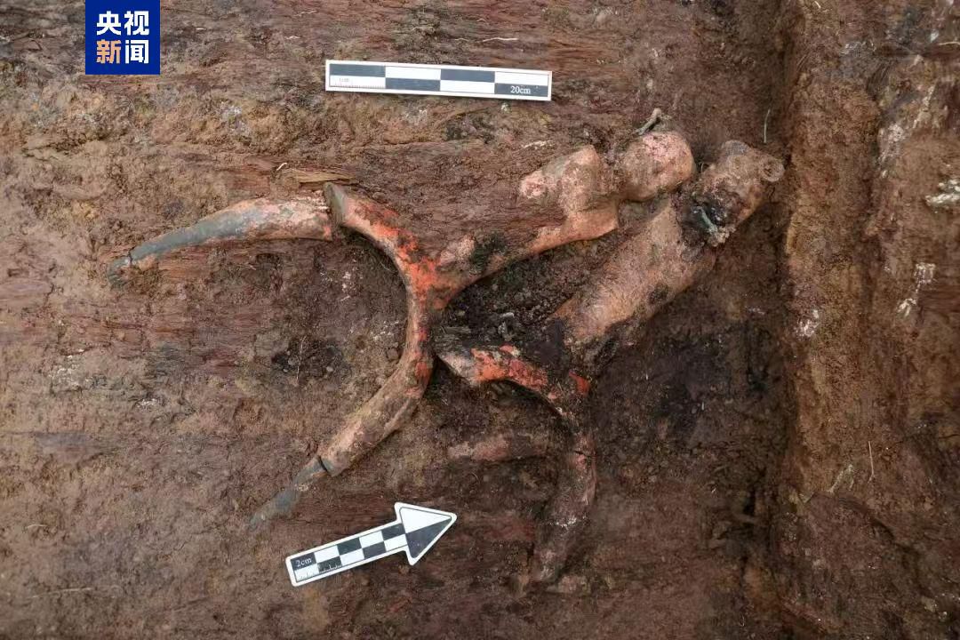 考古人员在外藏坑发现彩绘塑衣式陶女俑10件;着衣式彩绘骑马俑约17件,部分陶俑配有铁剑、铜镞、铁戟等武器;明器木车马8辆,出土车軎、盖弓帽、达常、衡末、马衔镳、马络饰等车马小件。