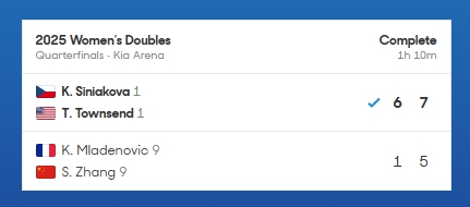 此后,她与搭档延续良好状态,以7:6(3)/6:2战胜赛会五号种子詹皓晴/基切诺克,职业生涯第10次跻身大满贯女双八强。