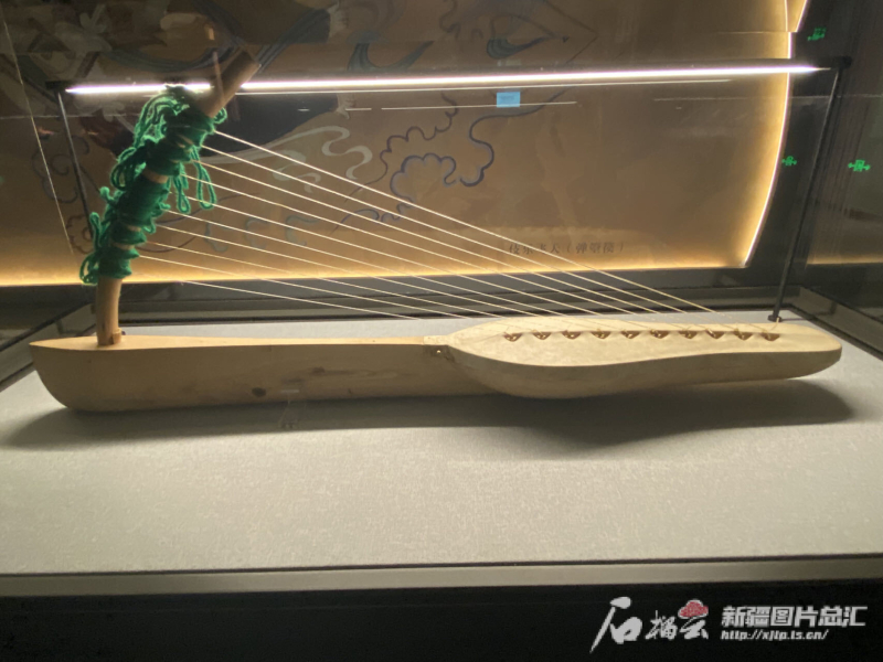 这两件复制品复原的是且末县扎滚鲁克墓地出土的两件箜篌文物,是目前新疆境内发现的年代最早的箜篌实物。