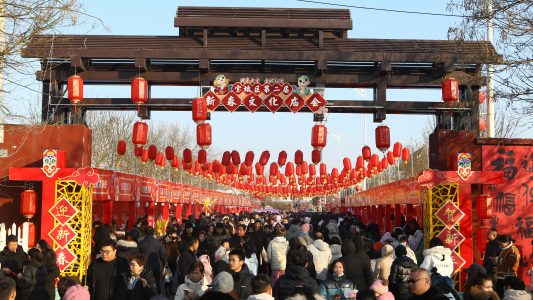华侨网 旅游地理 天津寶坻了凡公園第二屆新春文化廟會火熱啟幕 「廟會+燈展」雙重體驗模式驚喜亮相