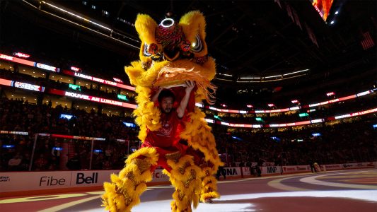 陳氏醒獅團獲邀在冰球之夜助慶舞獅表演慶新春