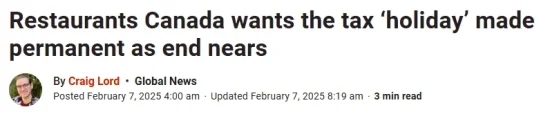據加拿大餐館協會(Restaurants Canada)發布的報告稱,如果沒有此次免稅期,食品服務行業在這60天內的銷售額可能會少掉15億加元。
