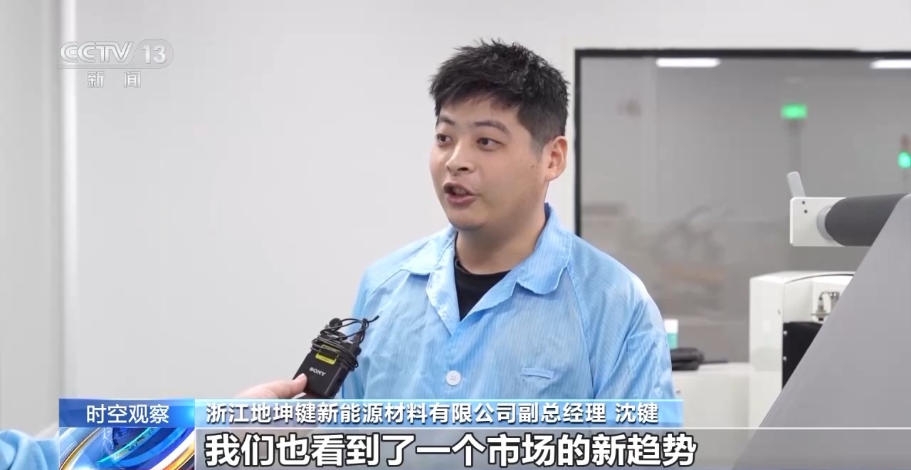 浙江地坤键新能源材料有限公司副总经理 沈键:我们也看到了市场的新趋势,比如说折叠屏手机、智能穿戴设备的普及,也对电池的续航提出了更高的要求。我们也在固态电池方面做技术攻关,力争在下一代产品中得到技术突破。