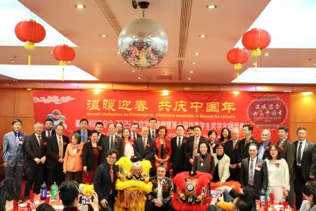 聯邦前國會副議長Alexandra Mendes女士、. Frank Baylis 前國會議員、Pierrefonds-Roxboro 市長Dimitrios (Jim) Beis、NDG市議員Stephanie Valenzuela女士、寶樂莎市第八區議員李西西女士、洪門滿地可分部主委許偉安、華商會主席張仕根。當晚司儀引領全場互賀“蛇年大吉,萬事如意”。