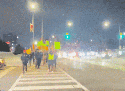 幾百人在知名網紅博主“加拿大光頭日記”帶領下,整個過程秩序井然。抗議者喊着口號,而路過現場的司機,看到震撼的場面也紛紛鳴笛聲援。