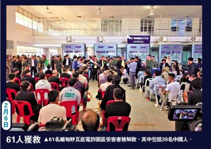 2月6日61人獲救。圖:61名緬甸妙瓦底電詐園區受害者被解救,其中包括39名中國人。