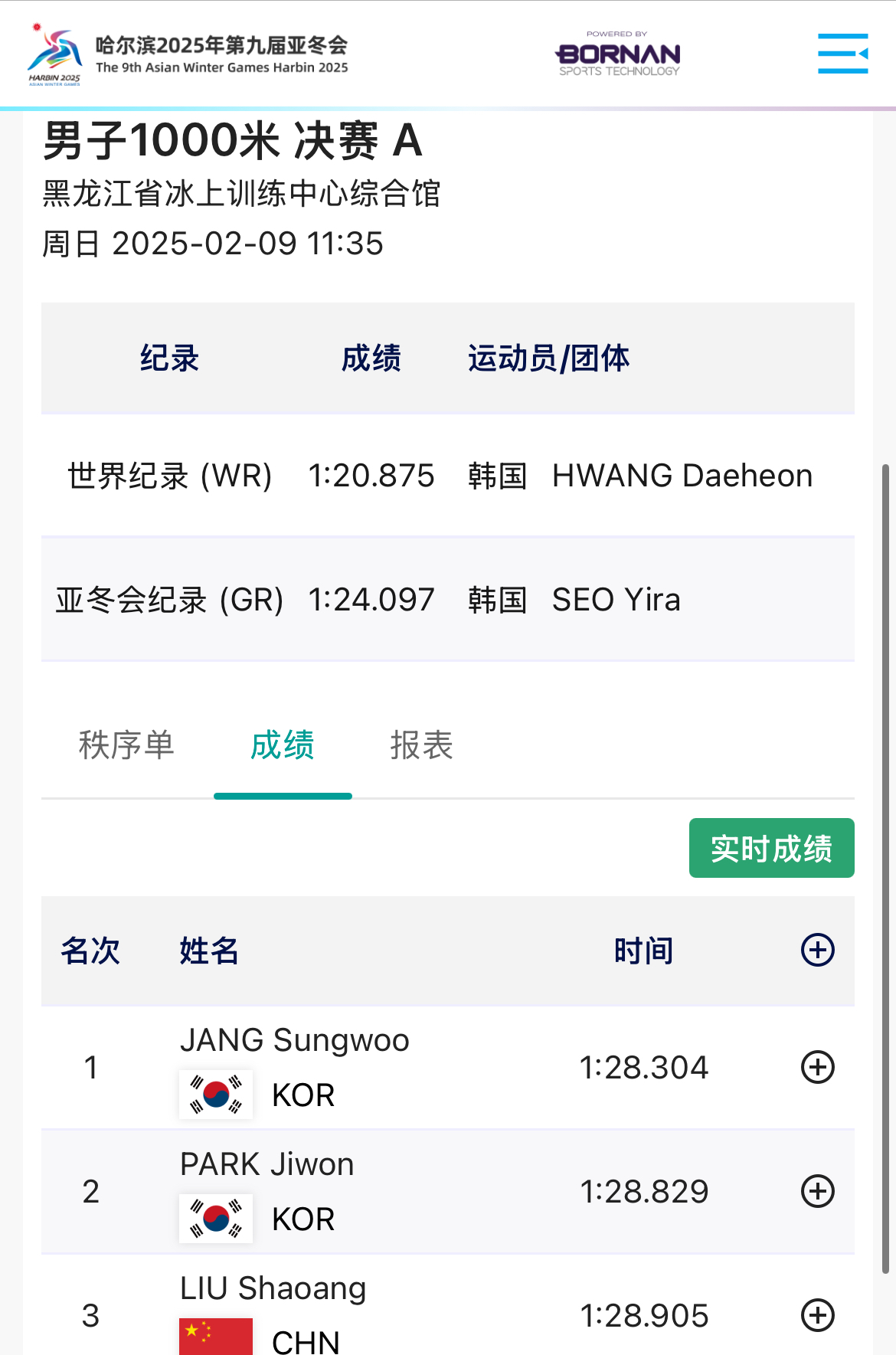 在此前举行的半决赛中,中国选手林孝埈被判犯规成绩无效,无缘晋级A组决赛。