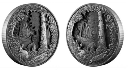 該硬幣的林地風景由加拿大藝術家Julius Csotoyni設計,採用四層重疊雕刻來營造陰影盒效果。
