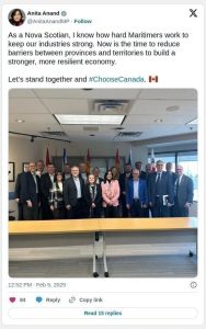 她在社交媒體上表示:“現在是時候減少各省和地區之間的障礙,以建立更強大、更具彈性的經濟了”。