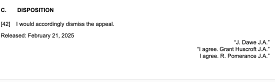 現在,安大略省上訴法院的法官駁回了他要求再次申訴的請求。