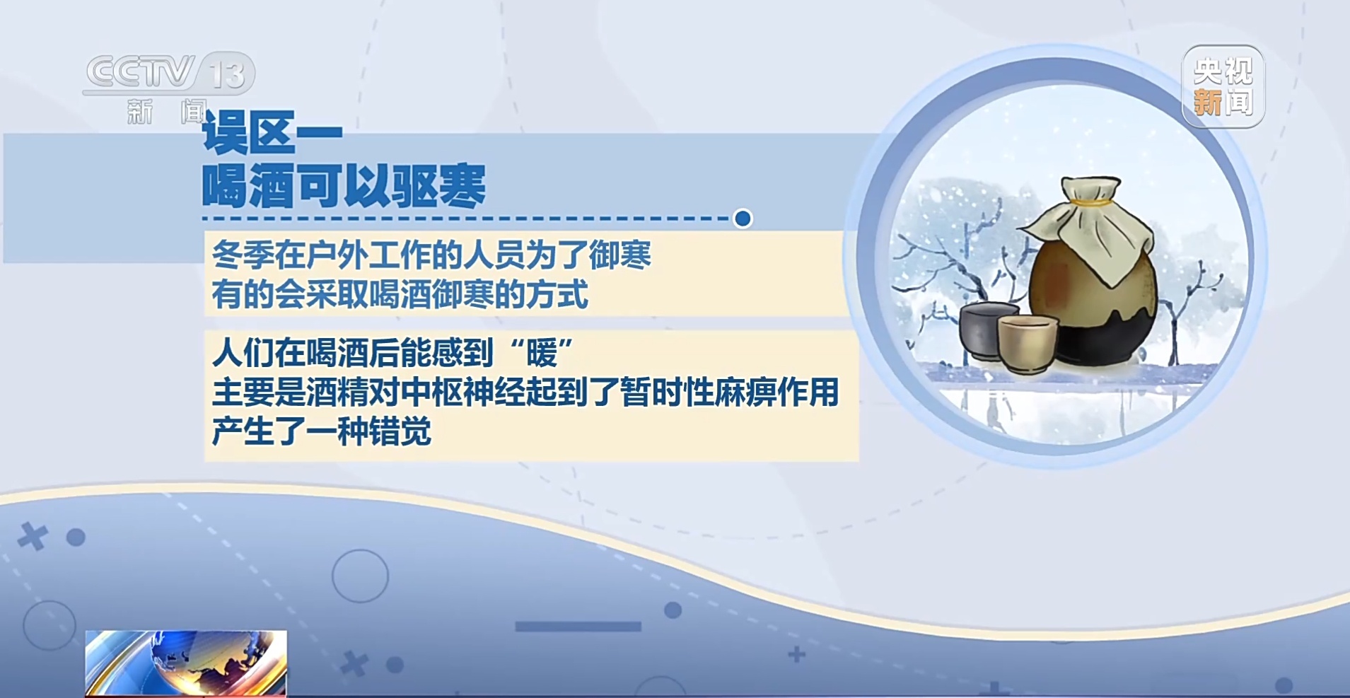 冬季在户外工作的人员为了御寒,有的会采取喝酒御寒的方式。专家说,人们在喝酒后能感到“暖”,主要是酒精对中枢神经起到了暂时性麻痹作用,产生了一种错觉。
