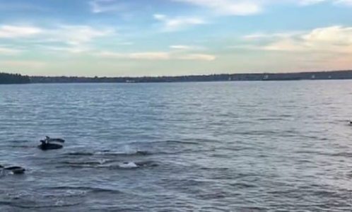 周五下午約4點45分,她趁天氣和暖,在Ambleside海灘附近挑了一張望海的長椅坐下,正準備起身離開時,突然看到一大群海豚出現在眼前,她還來得及拍下這罕見的一幕。