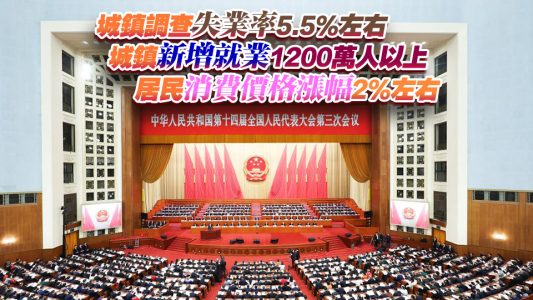 3月5日上午9時,十四屆全國人大三次會議在人民大會堂舉行開幕會。國務院總理李強在政府工作報告中提出今年發展主要預期目標:國內生產總值增長5%左右;城鎮調查失業率5.5%左右,城鎮新增就業1200萬人以上;居民消費價格漲幅2%左右;居民收入增長和經濟增長同步;國際收支保持基本平衡;糧食產量1.4萬億斤左右;單位國內生產總值能耗降低3%左右,生態環境質量持續改善。
