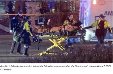 綜合報道:加拿大多倫多警方表示,當地時間3月7日(周五)晚上10:40,多倫多東部士嘉堡市中心附近一家酒吧發生槍擊案,導致12人受傷。
