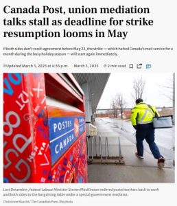 目前,政府指定的工業調查委員會(IIC)正在研究 加拿大郵政的商業模式,並將於 5 月 15 日 提交報告,嘗試為雙方找到可接受的合同方案。