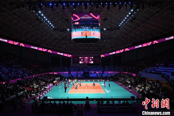 2024年12月18日,2024年世界女排俱乐部锦标赛在浙江杭州举行,天津渤海银行女排在小组赛中3比0战胜意大利米兰女排。图为比赛现场。 王刚 摄