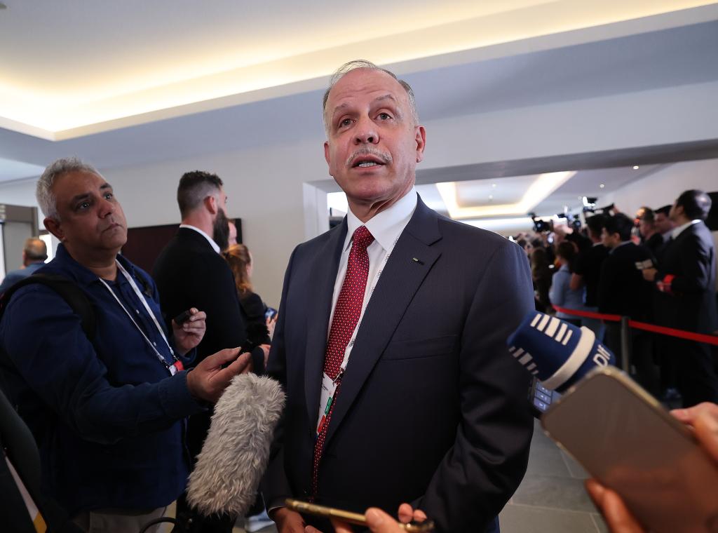 3月19日,国际奥委会执委、国际奥委会主席候选人费萨尔・侯赛因接受媒体采访。新华社记者 曹灿 摄