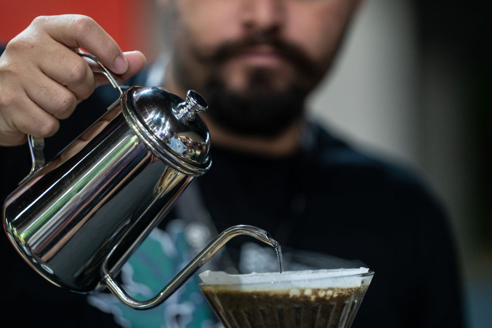 2023年11月9日,咖啡师在巴西贝洛奥里藏特举行的咖啡周上制作咖啡。新华社记者王天聪摄