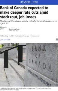 隨着特朗普的關稅攻勢使世界市場陷入混亂,數據顯示加拿大就業市場已經受到損害,預計加拿大央行今年降息幅度將會更深。