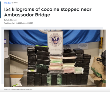 溫莎-底特律大使橋是北美最繁忙的貨運邊境之一,每天有數千輛商用卡車進出兩國,是走私集團常試圖利用的要道。此次查獲的154公斤可卡因若成功進入加拿大,市場價值可能超過數百萬加元,將對公共安全造成嚴重威脅。