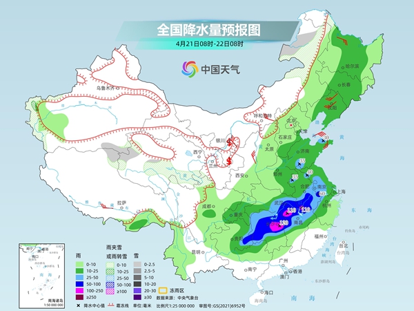 后天,新疆南疆西部山区、内蒙古东北部、青海西部和南部等地部分地区有小到中雪或雨夹雪。东北地区大部、华北南部、黄淮中东部、江淮、江汉中南部、西南地区东南部、江南中北部、华南西北部等地部分地区有中到大雨,其中,贵州东部、湖北东南部、湖南、安徽南部、江苏南部、江西中北部等地部分地区有暴雨,局地大暴雨。