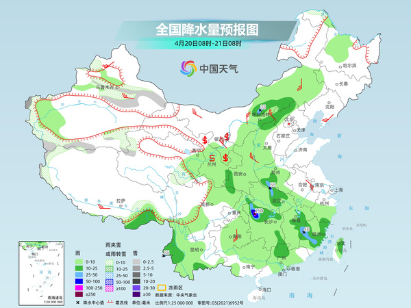 明天,新疆沿天山地区和南疆西部山区、青海东南部和西北部等地部分地区有小到中雪或雨夹雪。 内蒙古中部、山西北部、华北北部、西藏东南部、陕西西南部、河南西南部、湖北东北部和西南部、湖南北部、江西东部、福建、云南西部、台湾岛等地部分地区有中到大雨,其中,河南西南部、湖北东北部和西南部、湖南西北部等地部分地区有暴雨,局地大暴雨。