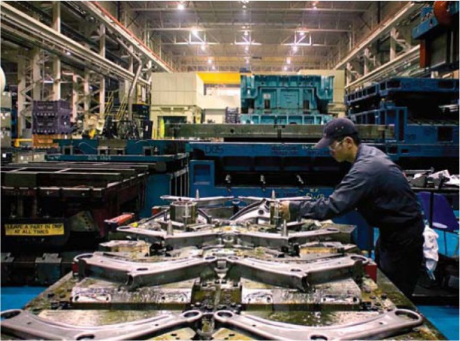 多年以来,由于北美自由贸易协定,沿着安大略湖⻢蹄型的区域,形成了一条汽⻋低成本的生态链,这里分布着大大小小的汽配厂,星罗棋布,一辆汽⻋由两万多个零件组成,各个公司分工协作,同时干一件事,最终所有的零配件汇集到几条汽⻋生产线,组装成⻋出厂,这也就免了很多的配件储存空间,节约成本,所有的配件与成⻋几乎都在运输的路上,最终到达消费者手中,公司之间紧密相连,你中有我,我中有你,牵一发而动全身,且一个零件从设计到模具的制作到试产,需要近一年的时间,不是你说一句回流就能办到,这一大摊子的改变,不知道猴年⻢月才能完成,但随着燃油汽⻋成了夕阳产业,日渐式微,加上新技术的进步和人工智能的提高,3D技术的普及,原有的生产格局打破,一次压模成型⻋身,减了不少配件。