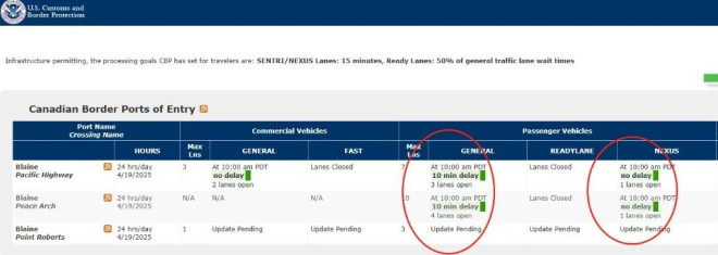 航空数据并非孤例。华盛顿州交通部和BC省交通部联合发布的数据指出,2025年3月,从BC省进入华盛顿州的车辆数量同比下降44%,仅为12.1万辆。与2024年同期的21.6万辆相比大幅下滑。