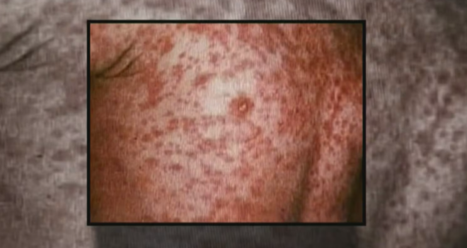 新闻稿写道,“在症状开始后3至7天,脸上会出现红色斑点状皮疹,随后蔓延至全身”。