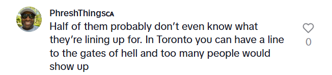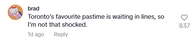 “多伦多人最喜欢的消遣就是排队,所以我并不感到意外。”