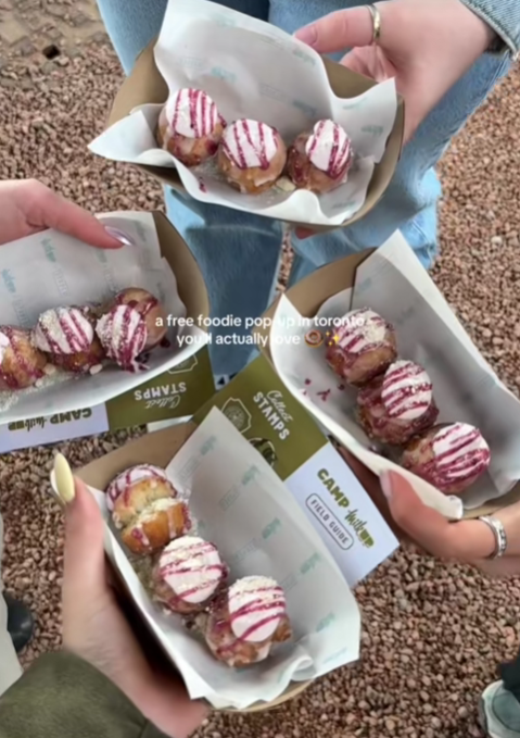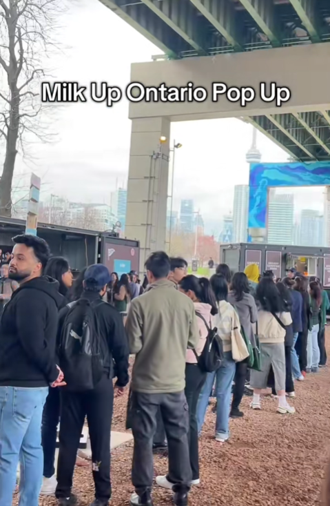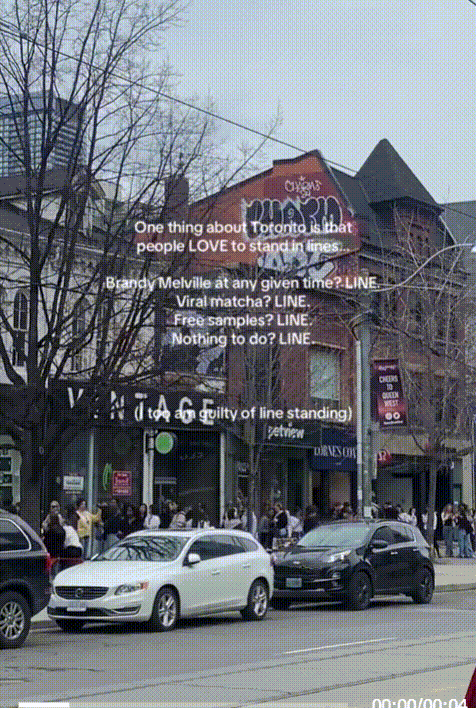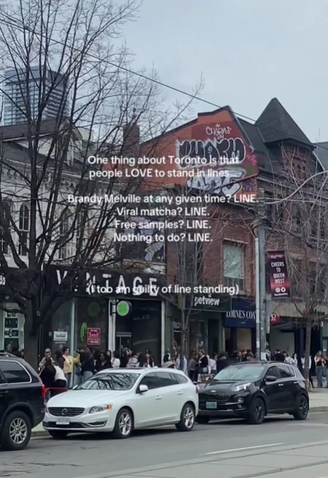 视频拍摄者忍不住吐槽:“关于多伦多的一件事是——人们永远喜欢排队,是为了免费样品?还是闲的没事情做?”