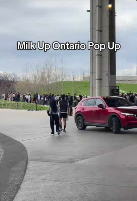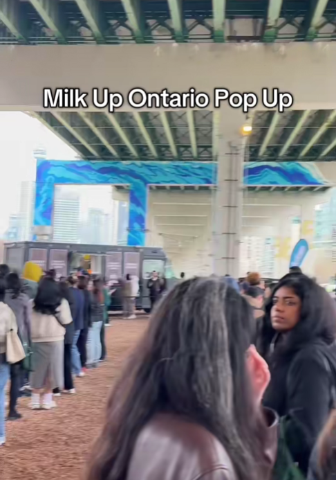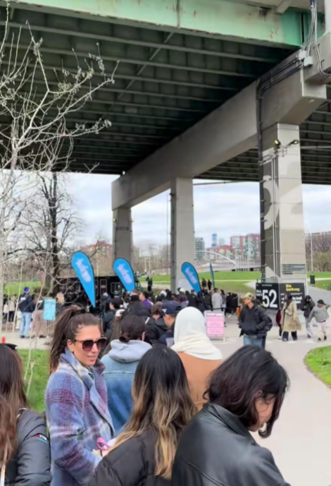 据网友@freeintoronto发布在TikTok的视频显示,这一活动的地址位于多伦多市中心的The Bentway – 250 Fort York Boulevard,时间是周五下午5点(活动刚开始),现场的长队已经一眼看不到头了!