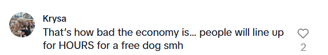“经济就是这么糟糕,人们会愿意排队几小时,只为了领一个免费的热狗。”