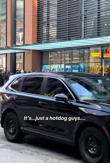 视频拍摄者无奈写道:“朋友们……这只是一个热狗啊……”